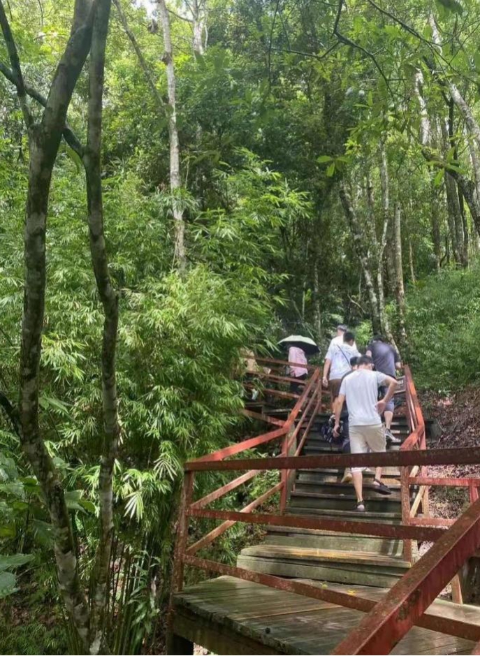 ? ?沿木棧道溯溪而上,聆聽蟲鳴鳥叫,原始雨林中激流飛瀑,古樹參天,空氣清新甜潤(rùn),沁人心脾。行到水窮處,坐看云起時(shí)。