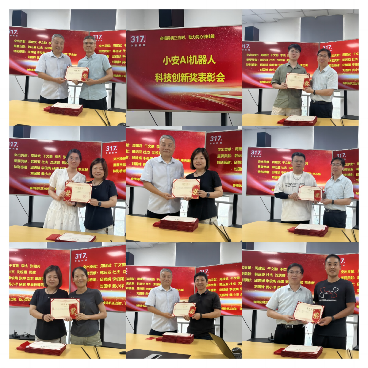 中安科技AI應用事業部近期舉行表彰會,表彰在“小安”車廂AI機器人做出貢獻的技術人員。勇于創新,不斷進步是中安科技的競爭力基石,大家共勉!