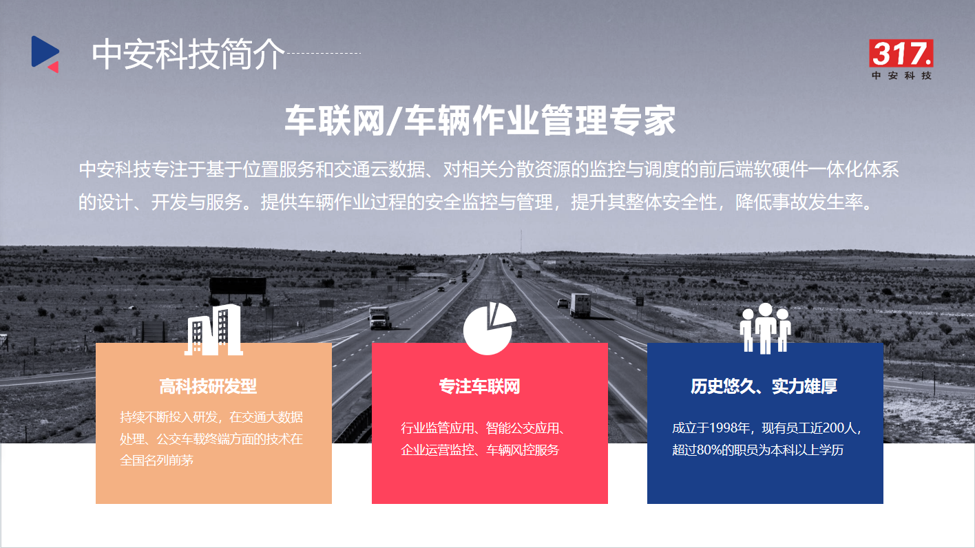 ??上海中安電子信息科技有限公司從1999年成立至今,在車輛行駛安全風控服務、圖片視頻AI智能識別、北斗衛星車聯網應用、環保移動源排放監測系統、智慧城市行業監管等專業領域,積累了豐富的經驗和眾多成功的實踐案例,有專業的服務團隊和完善的售后服務保障體系。